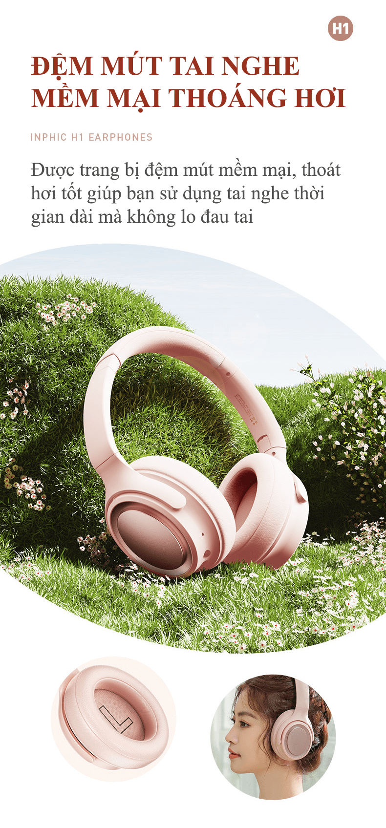 - Tai nghe INPHIC H1 được thiết kế ôm khít mọi cỡ đầu và tạo được cảm giác dễ chịu trong một thời gian sử dụng dài.