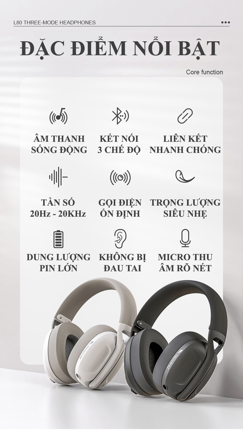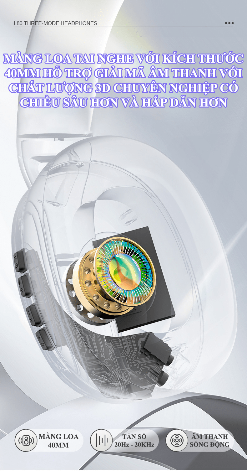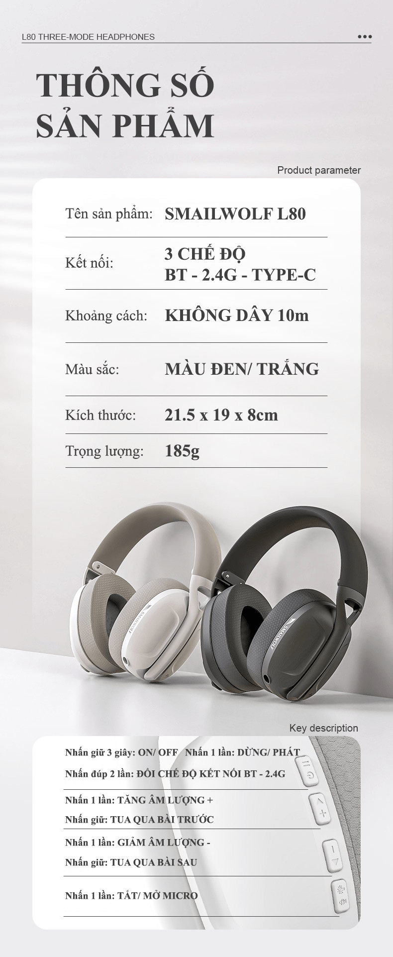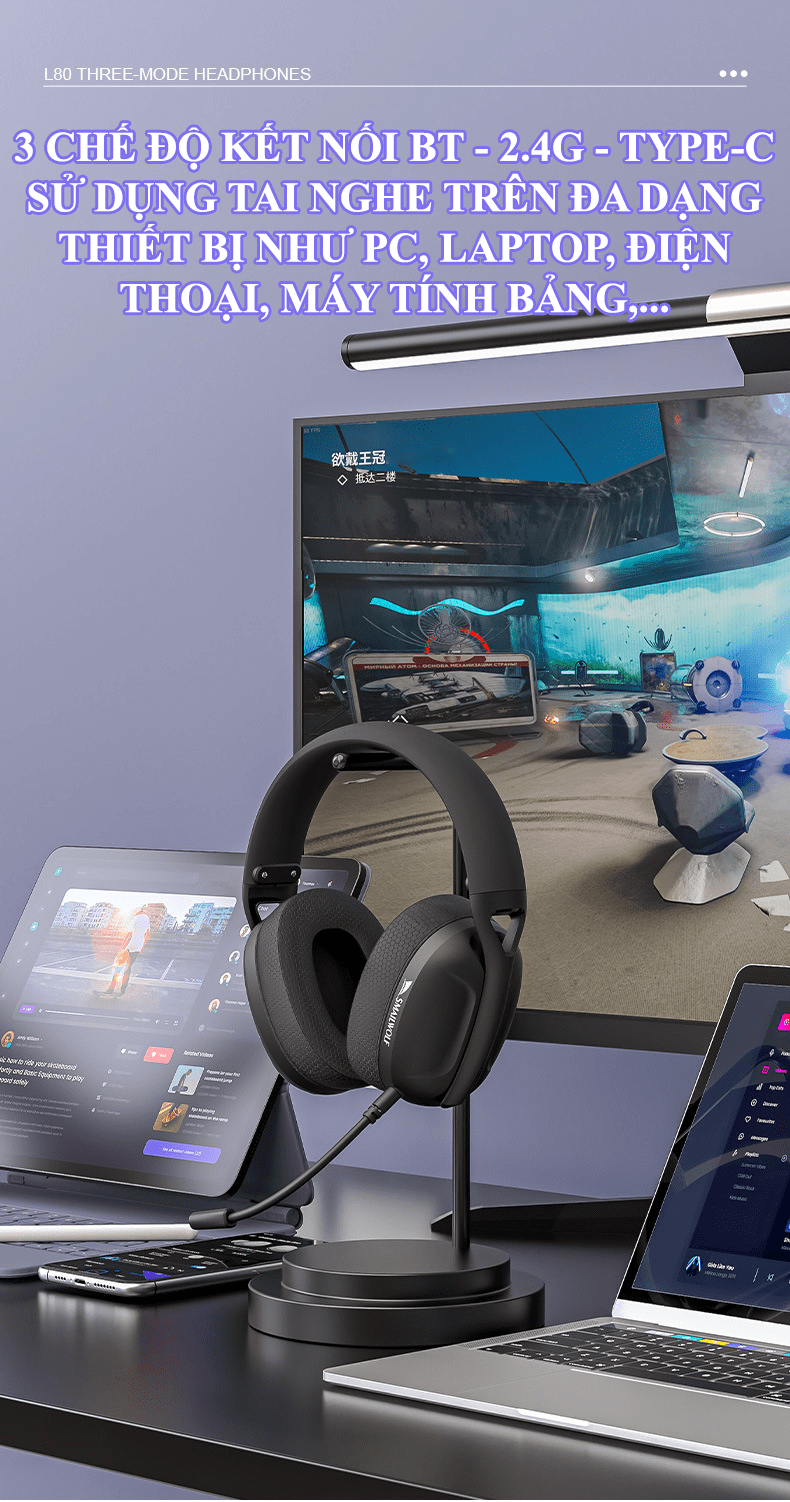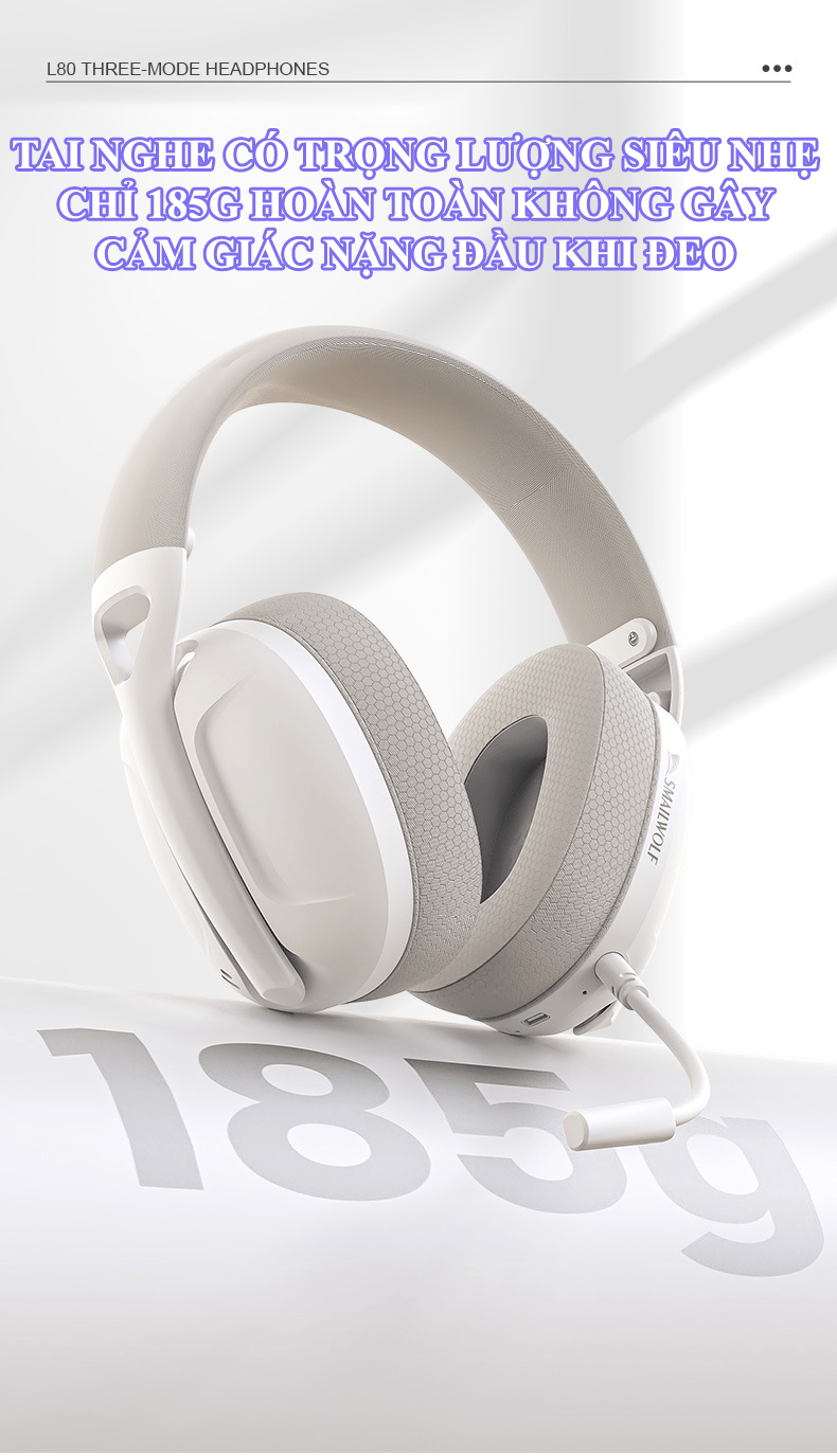 Tai nghe không dây SMAILWOLF L80 thế hệ mới kết nối 3 chế độ Bluetooth - 2.4G - Type-C với âm thanh 3D sống động kèm theo micro khử tiếng ồn hỗ trợ đàm thoại