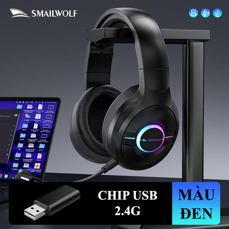 Tai nghe không dây SMAILWOLF L50 kết nối 3 chế độ Bluetooth - USB 2.4G - Dây Type-C có đèn led RGB tự động đổi màu âm thanh sống động