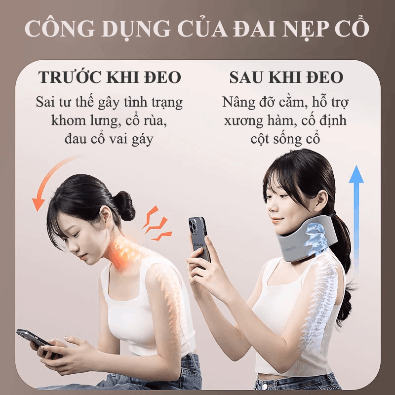 - Không nên lạm dụng: Chỉ nên đeo trong thời gian ngắn (theo chỉ dẫn, thường không quá 2-3 giờ liên tục hoặc khi cần thiết). Đeo quá lâu có thể khiến cơ cổ bị yếu đi, teo cơ và phụ thuộc vào đai.