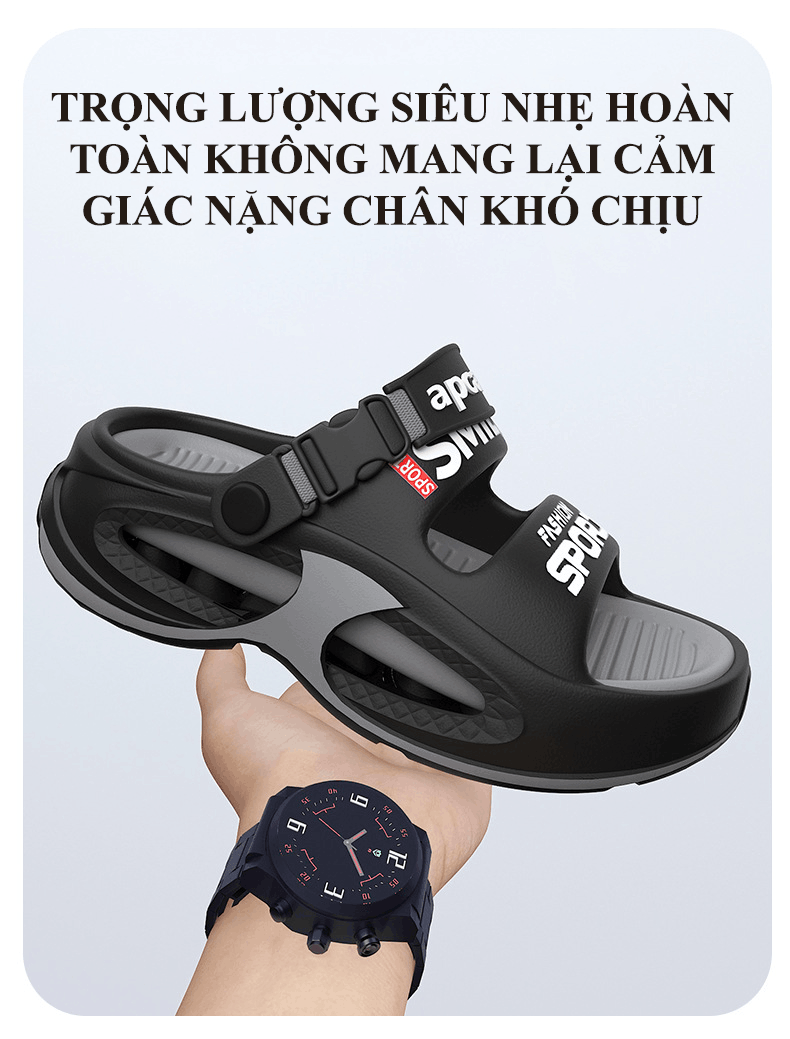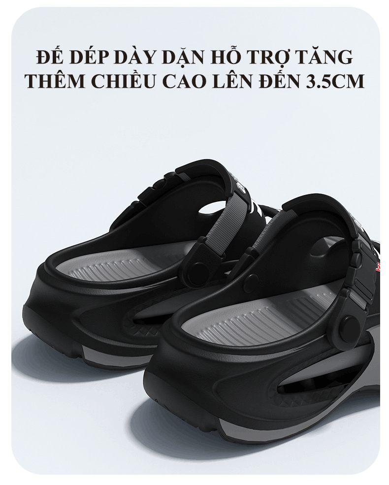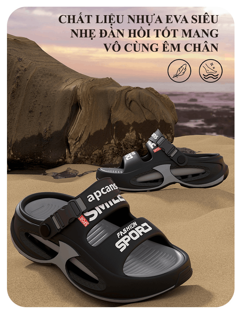 Chất liệu EVA cao cấp: Nhẹ, êm chân, chống trơn trượt, co giãn tốt và bền bỉ.