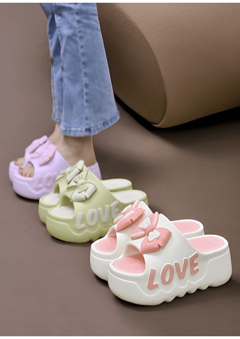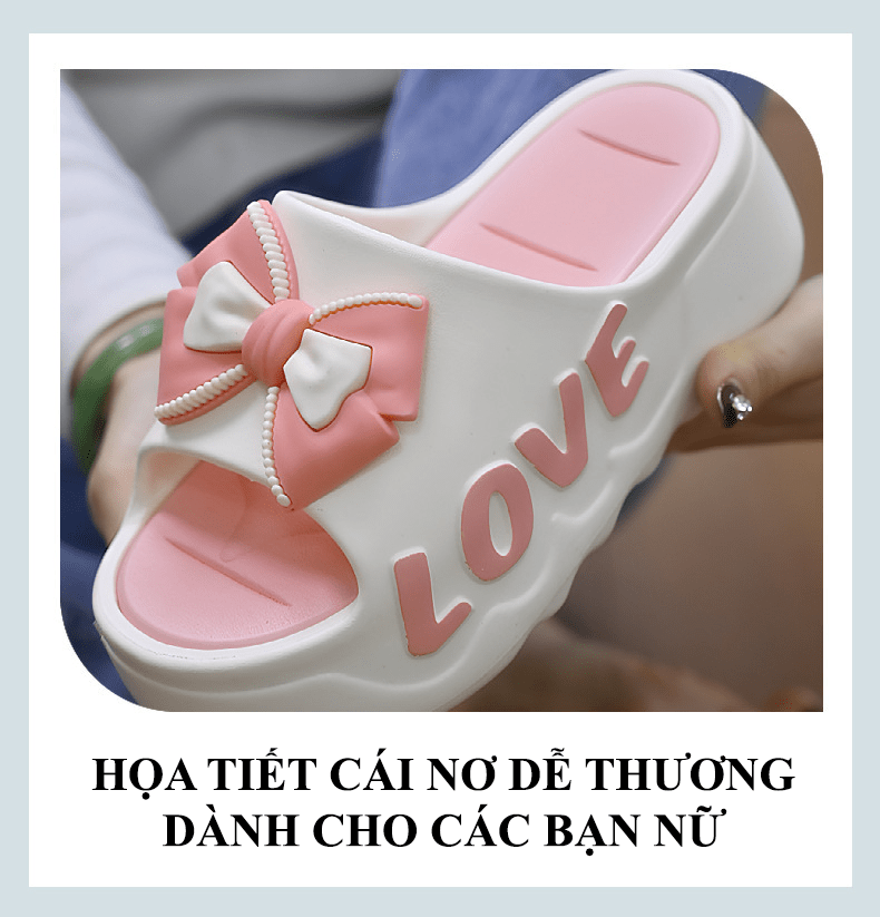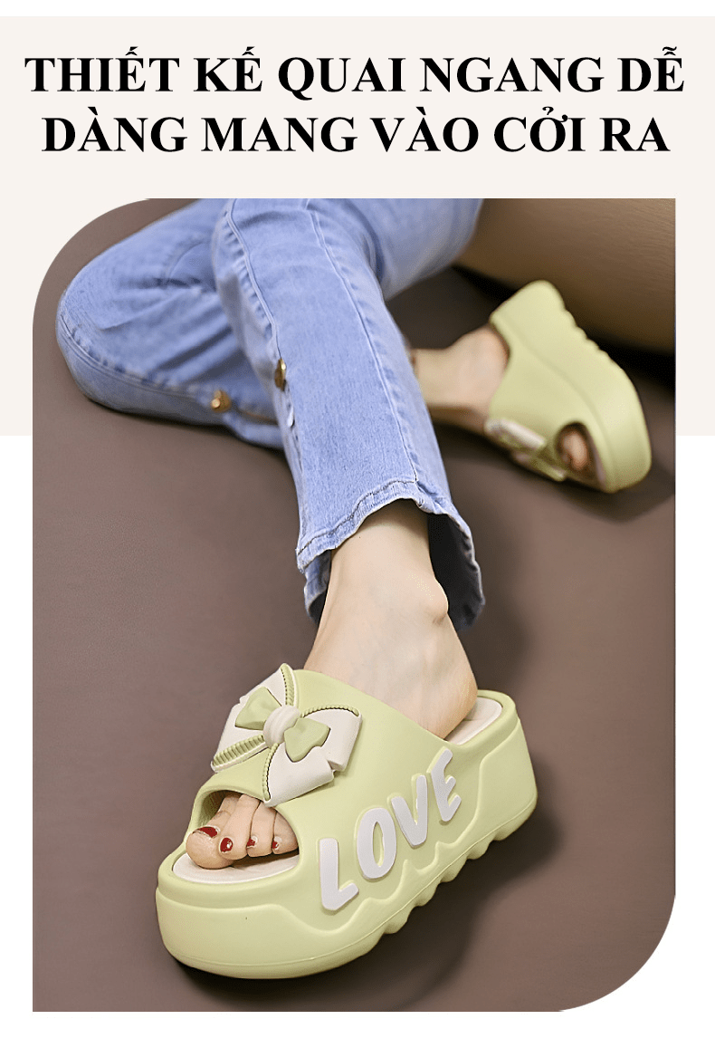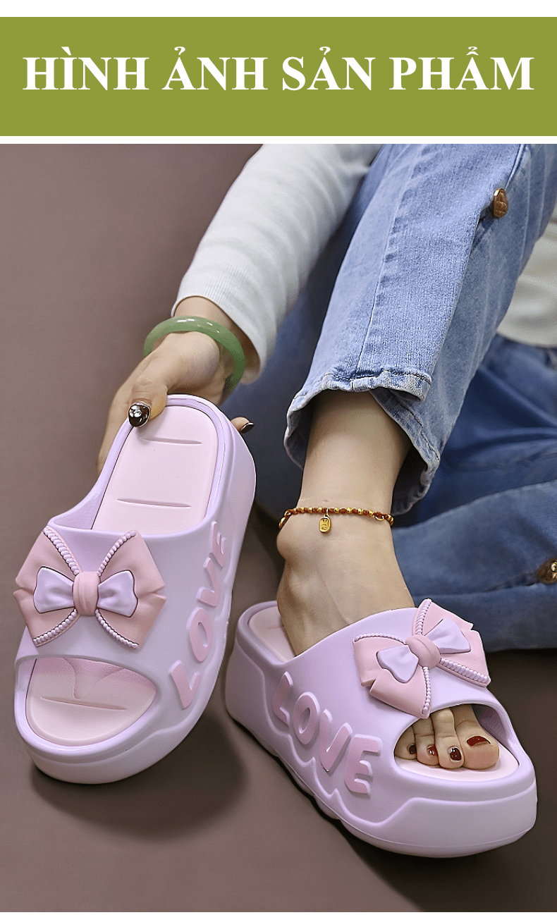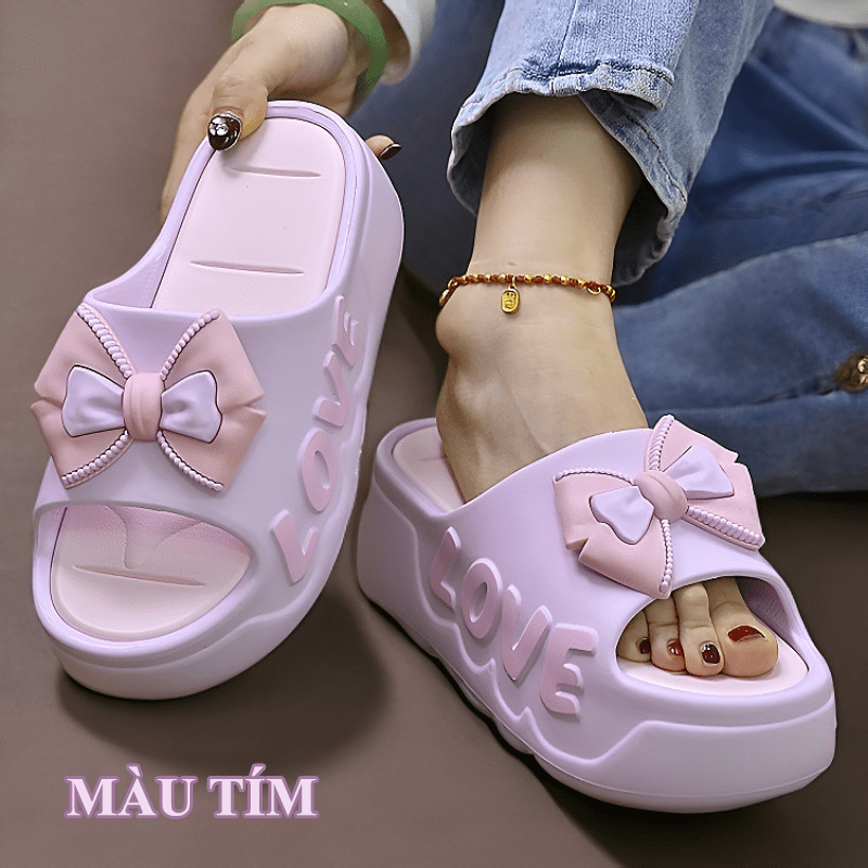Dép quai ngang nữ G00047 thiết kế đế cao 4cm với họa tiết nơ chữ love dễ thương nữ tính
