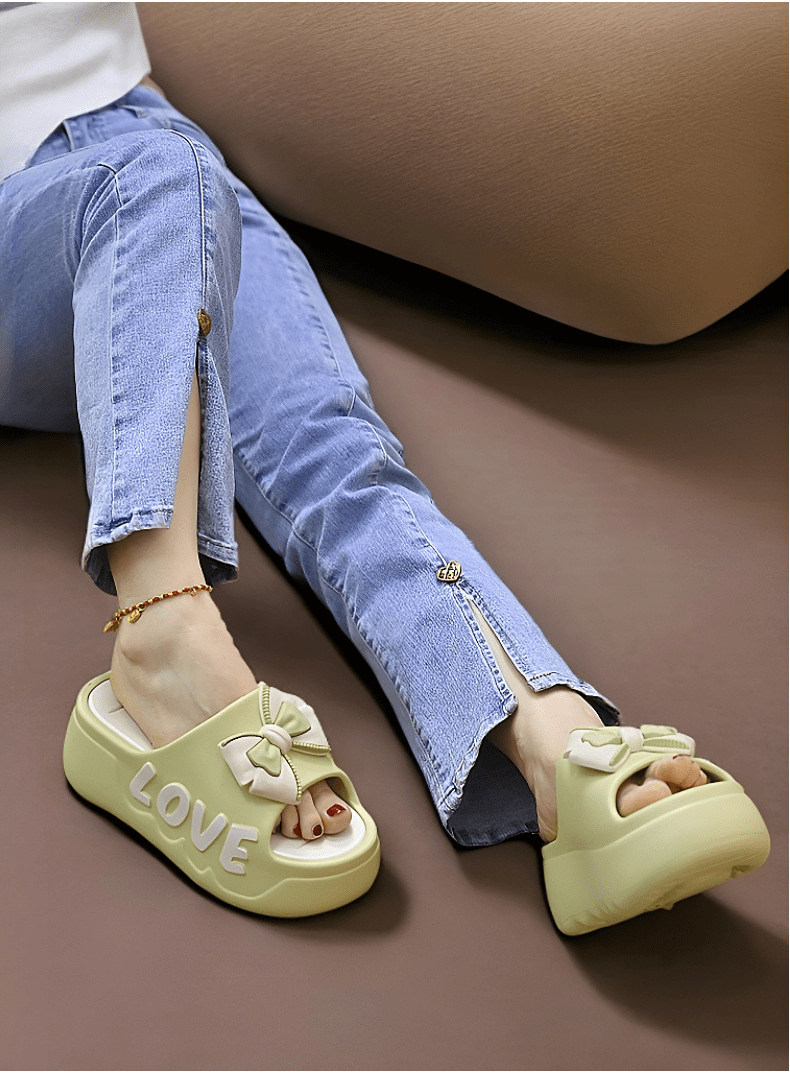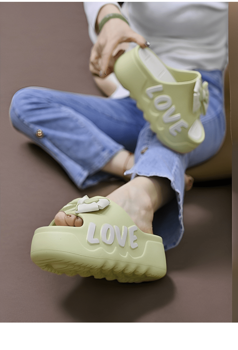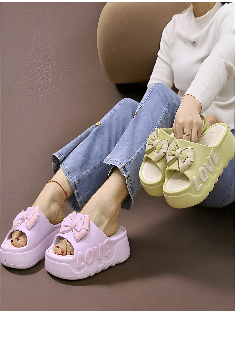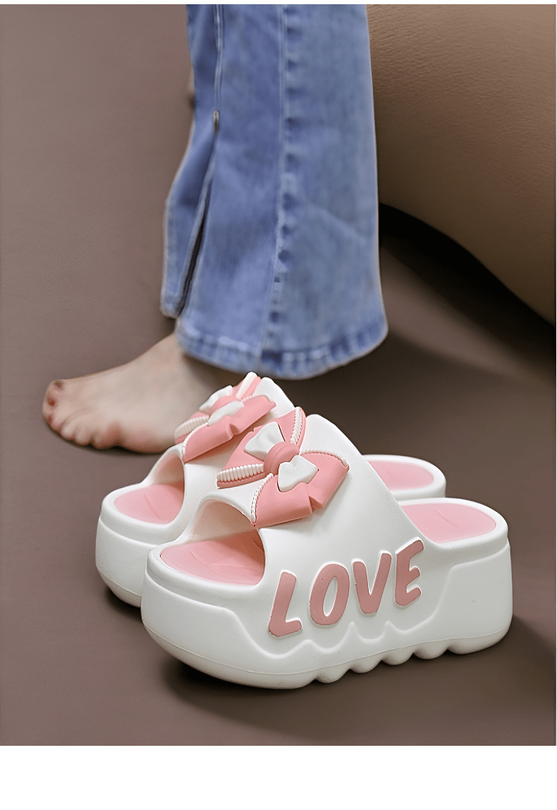 Dép quai ngang nữ G00047 thiết kế đế cao 4cm với họa tiết nơ chữ love dễ thương nữ tính