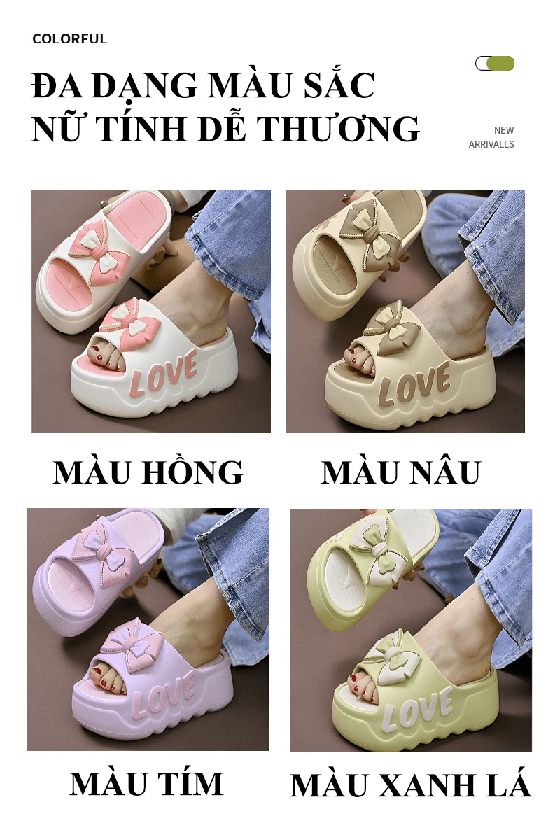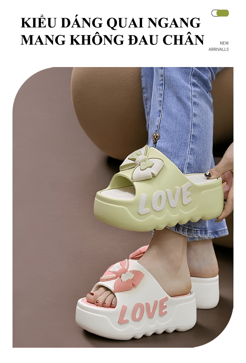 [VIDEO] Dép quai ngang nữ G00047 thiết kế đế cao 4cm với họa tiết nơ chữ love dễ thương nữ tính