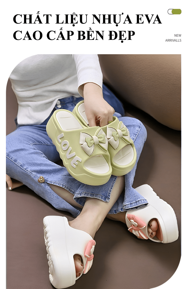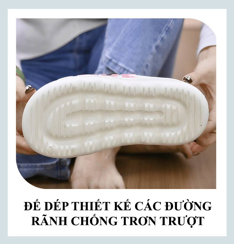 - Chất liệu nhựa EVA cao cấp (nhẹ, mềm dẻo, chống trơn tốt và êm chân).