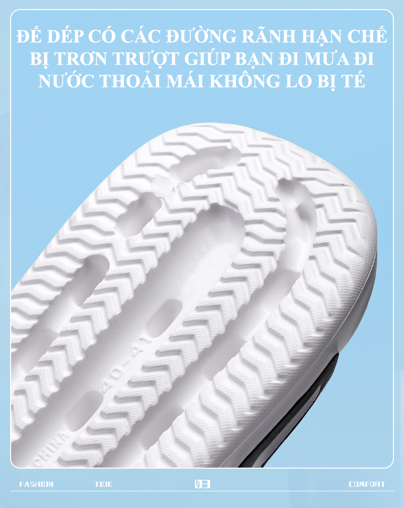 - Đế dép có độ đàn hồi tốt, giảm chấn khi di chuyển