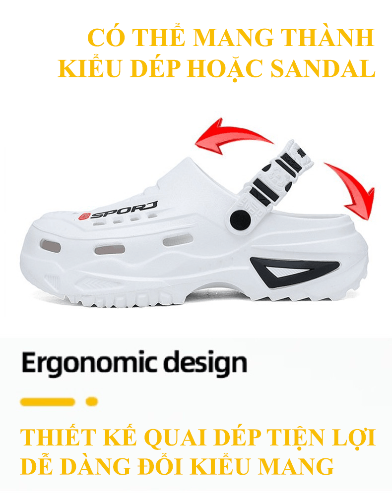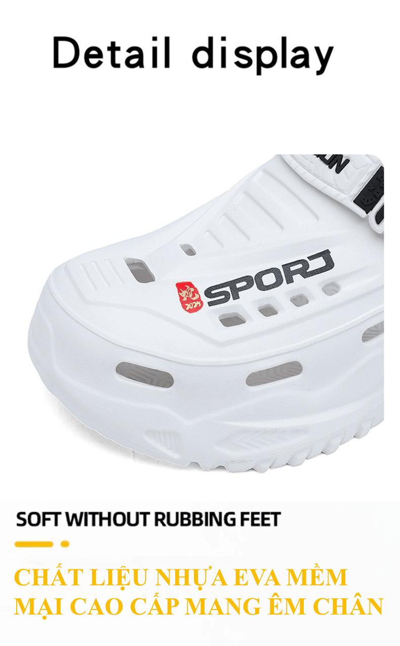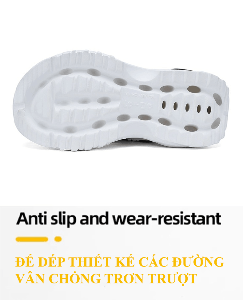 Chất liệu EVA cao cấp: Nhẹ, êm chân, chống trơn trượt, co giãn tốt và bền bỉ.