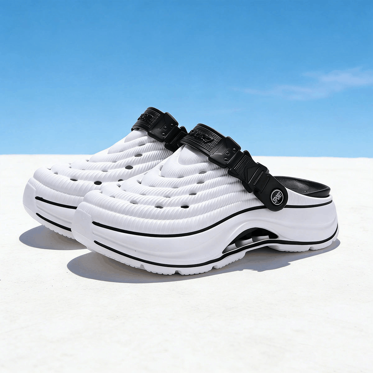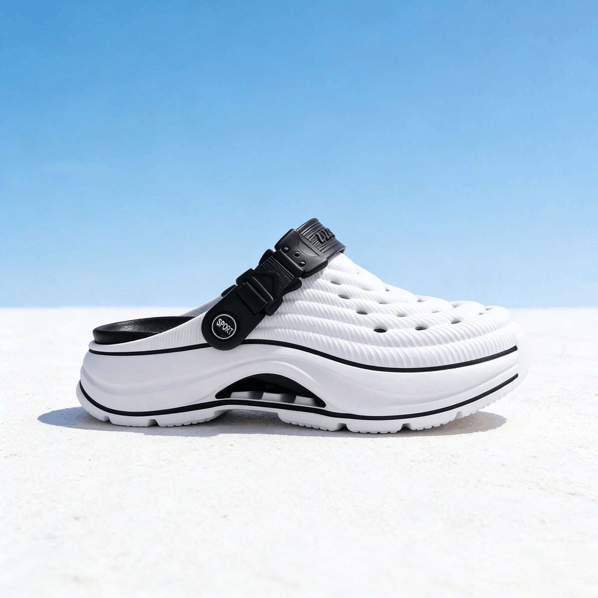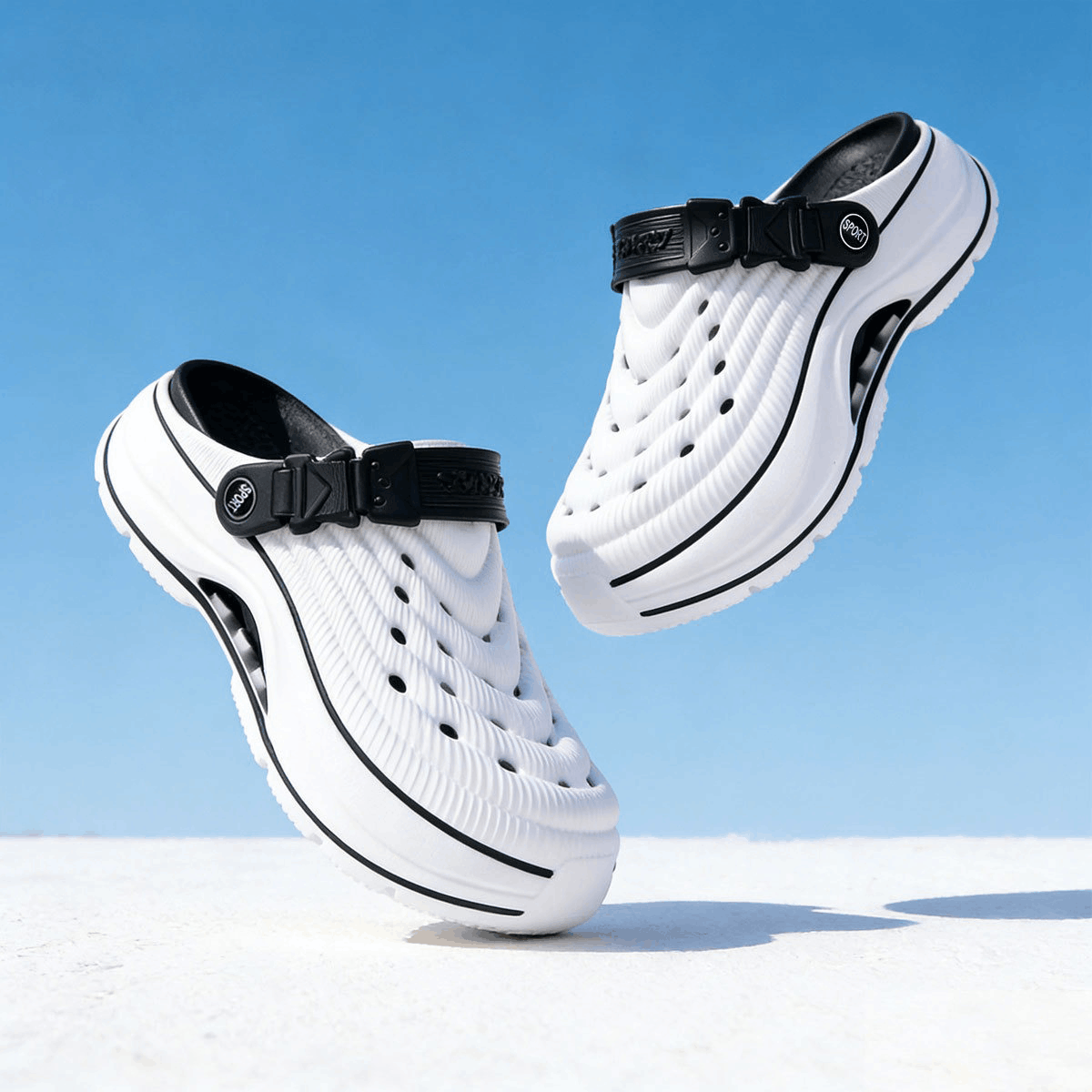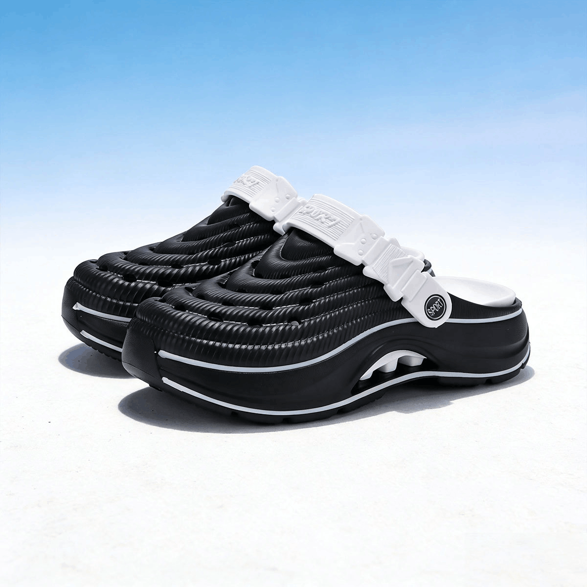 Chất liệu EVA cao cấp: Nhẹ, êm chân, chống trơn trượt, co giãn tốt và bền bỉ.