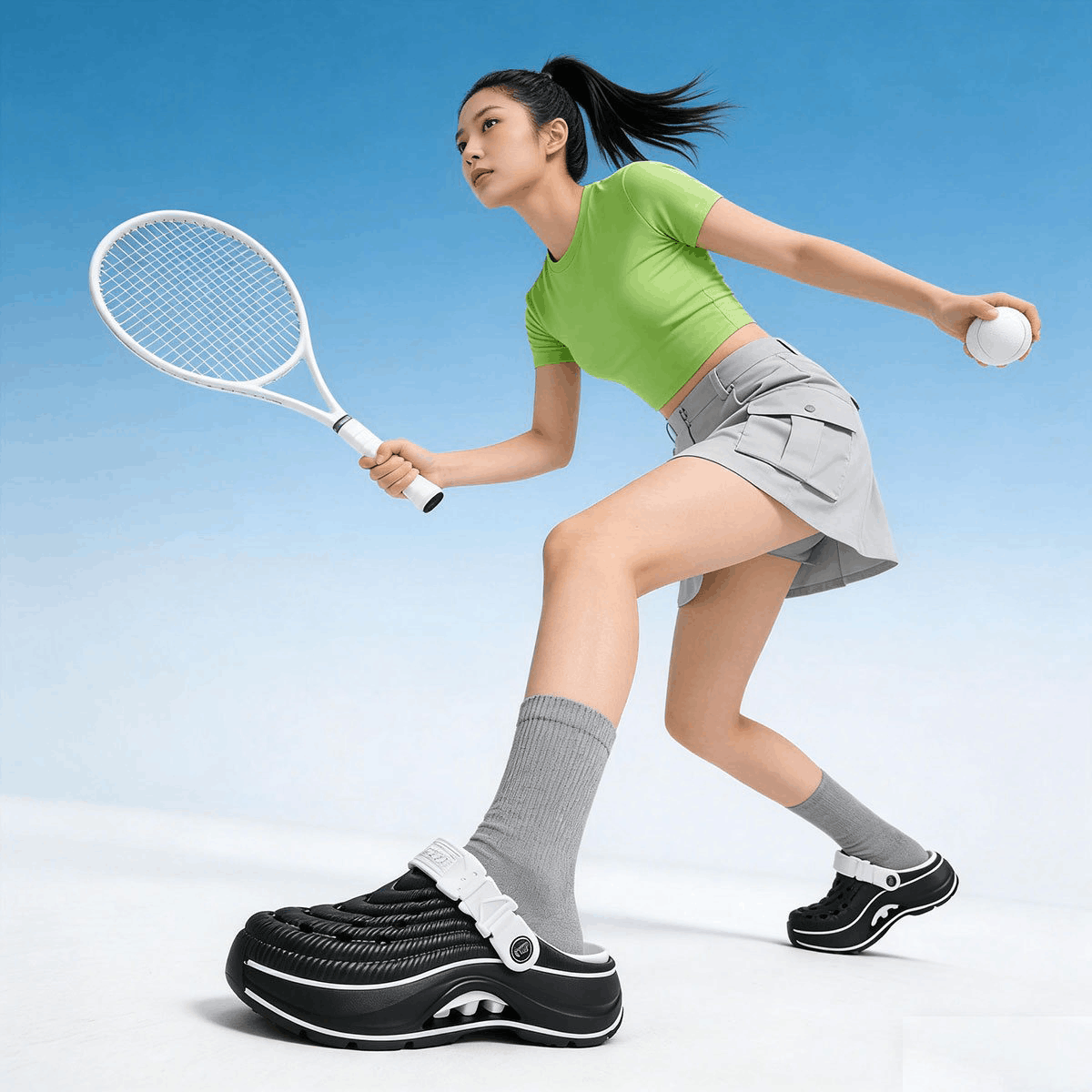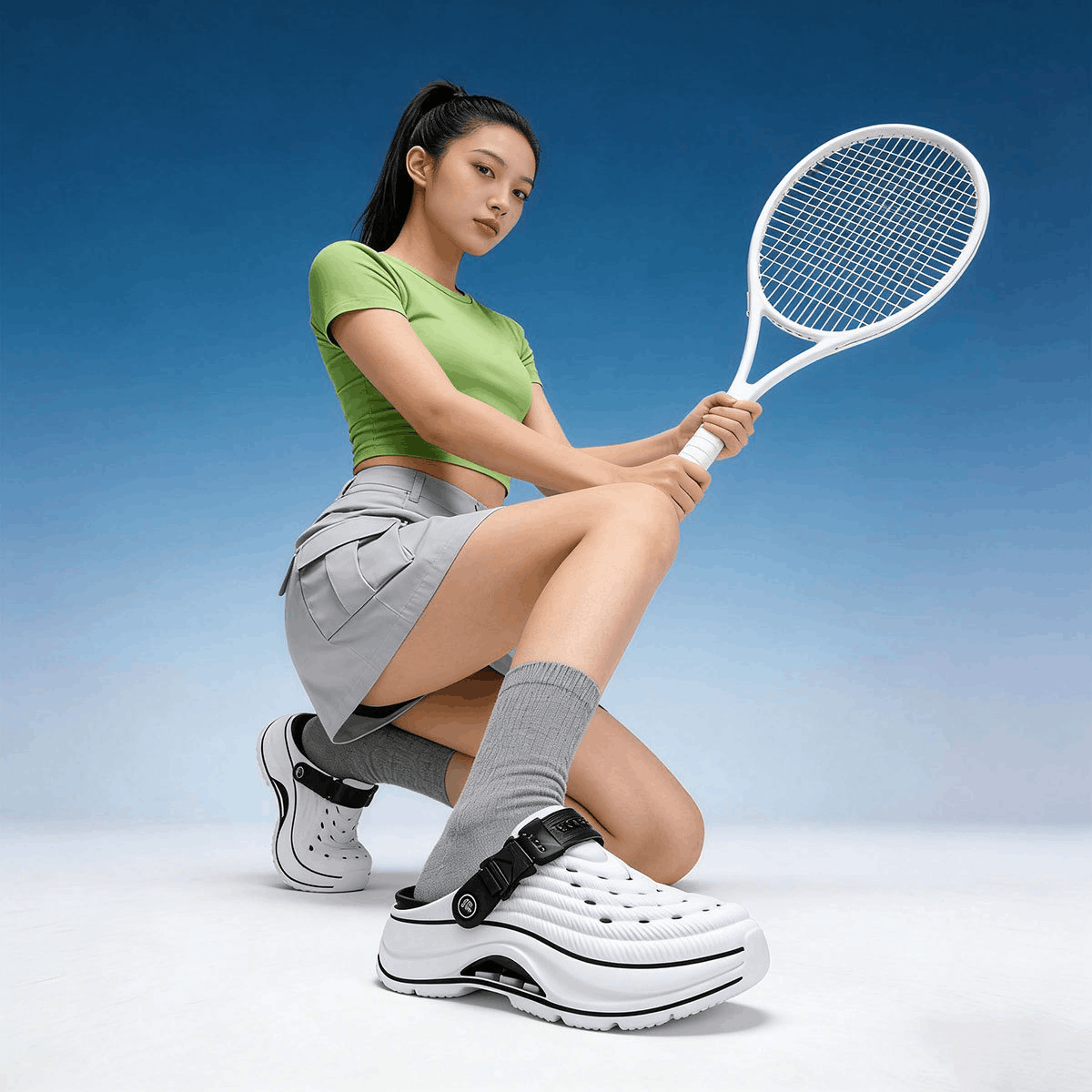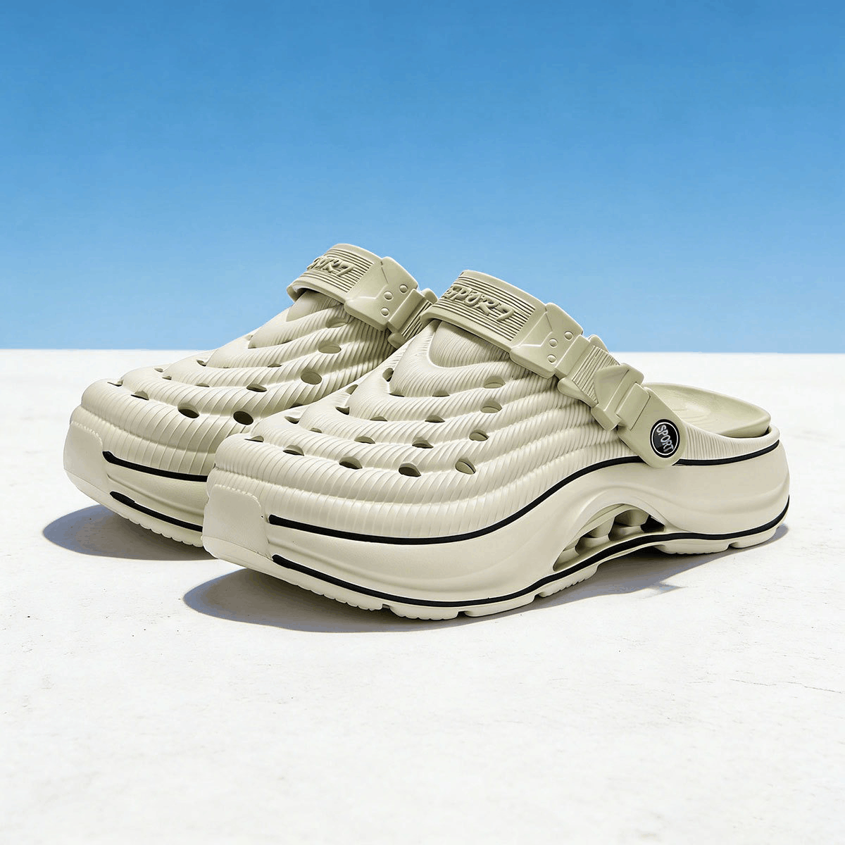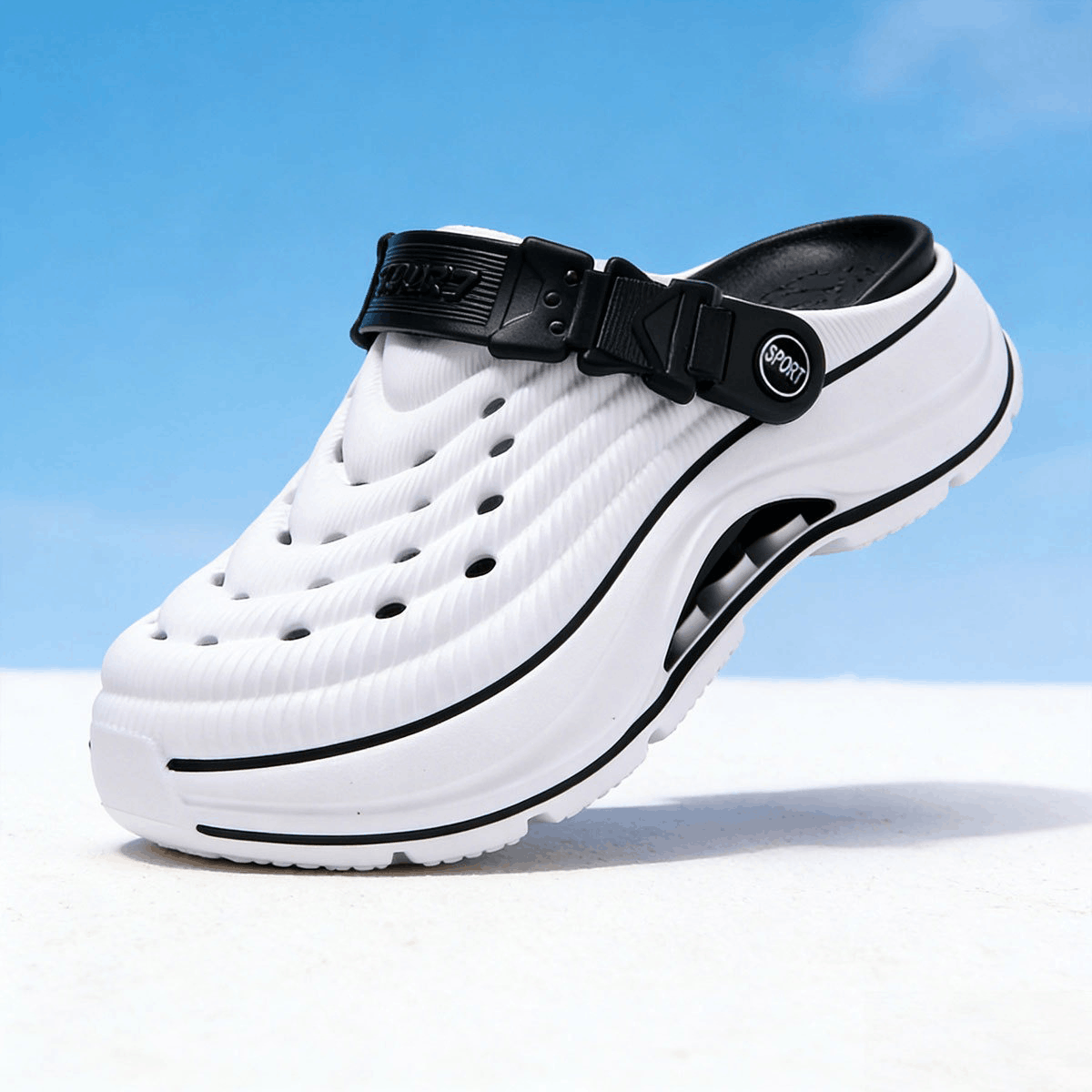 Chất liệu EVA cao cấp: Nhẹ, êm chân, chống trơn trượt, co giãn tốt và bền bỉ.
