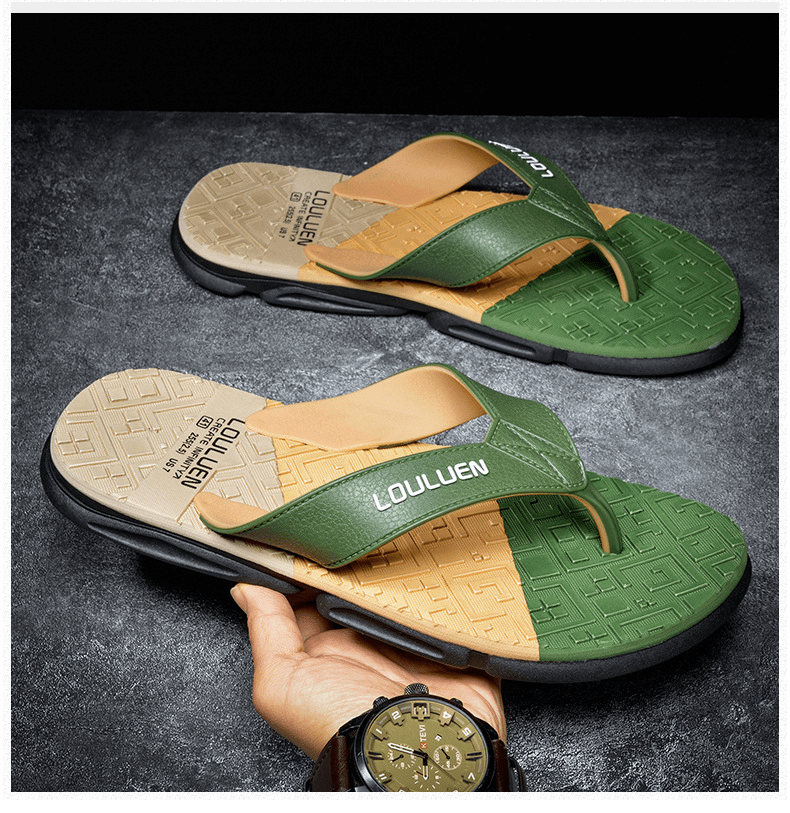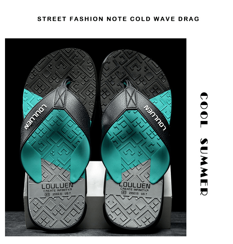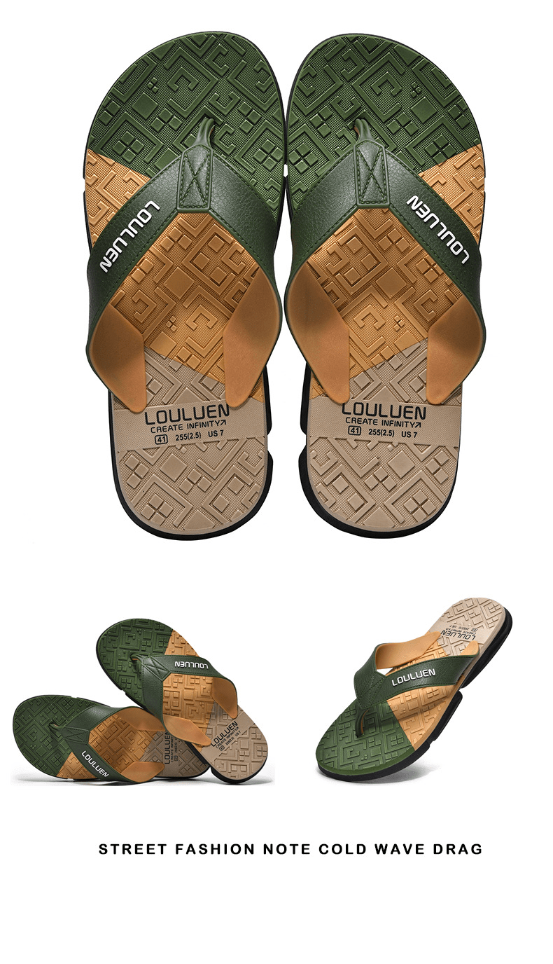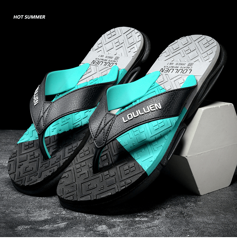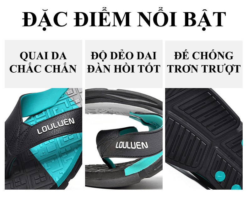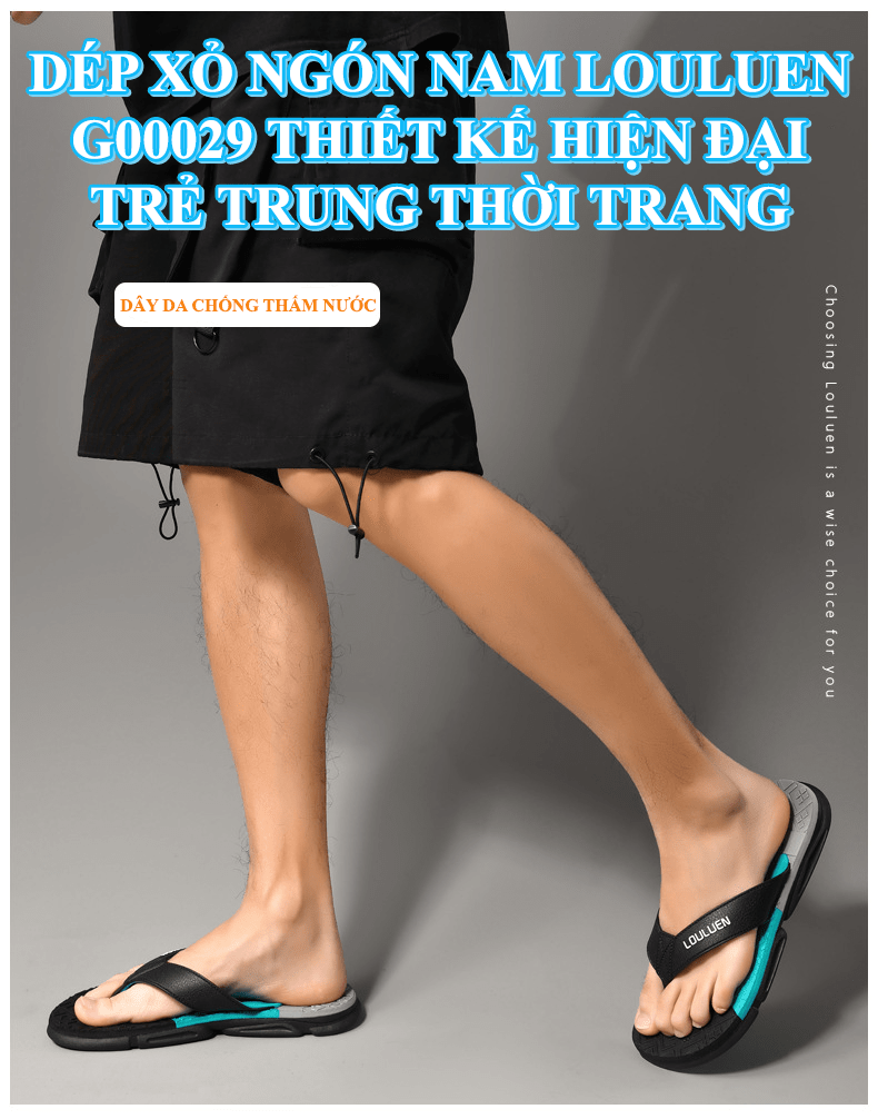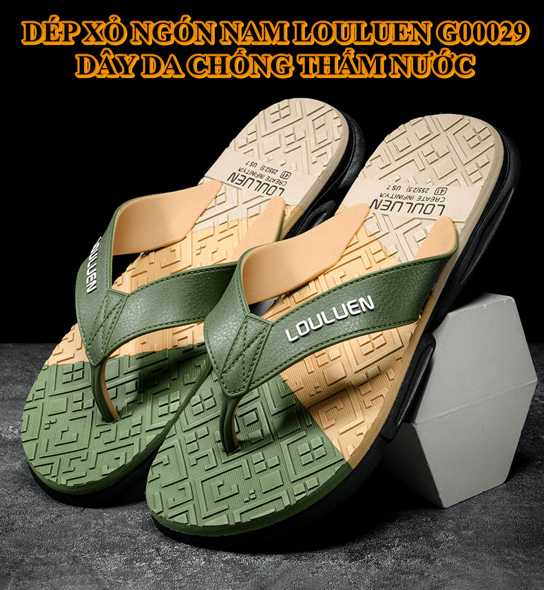 Dép xỏ ngón nam LOULUEN quai đeo bằng dây da chống thấm nước với thiết kế đường vân 3D mang êm chân G00029