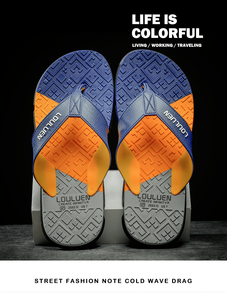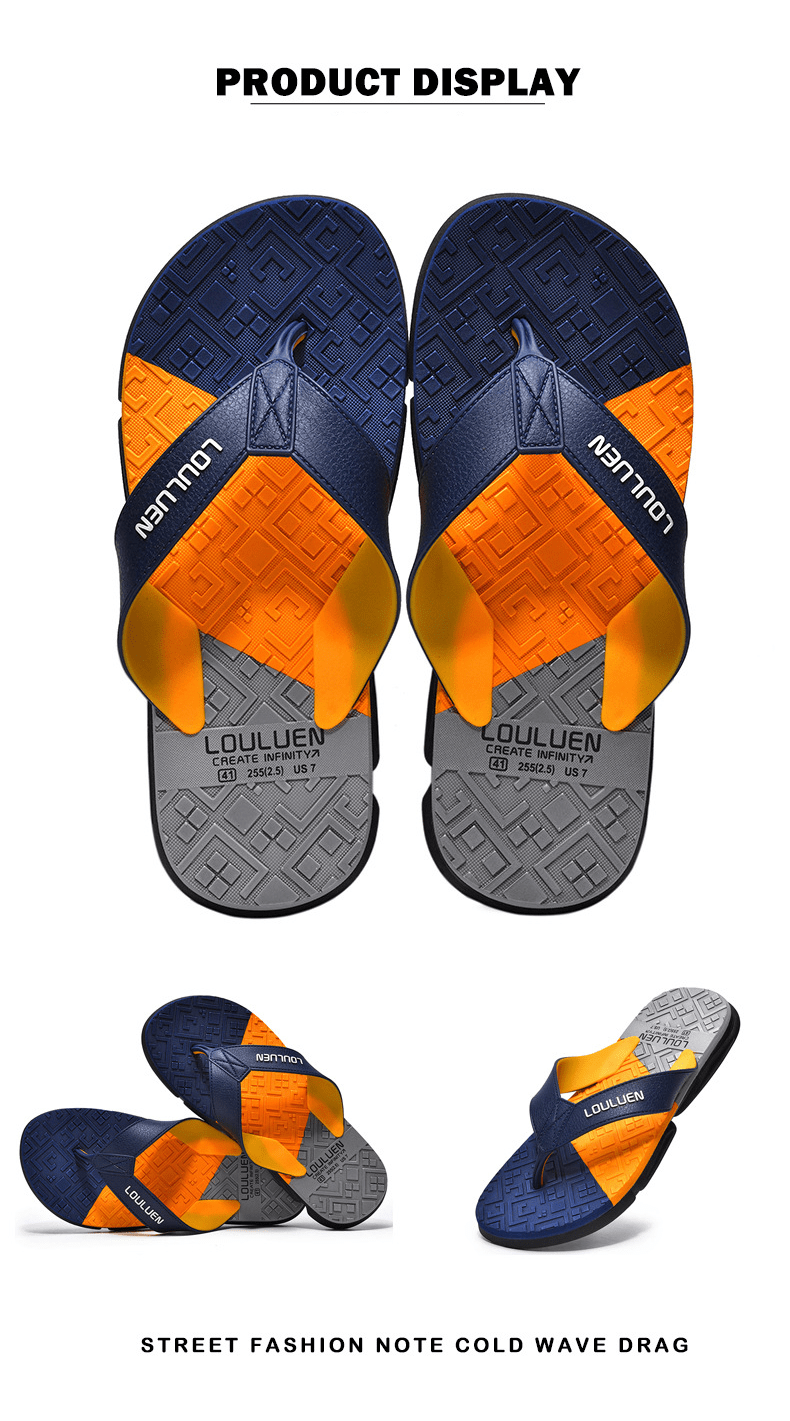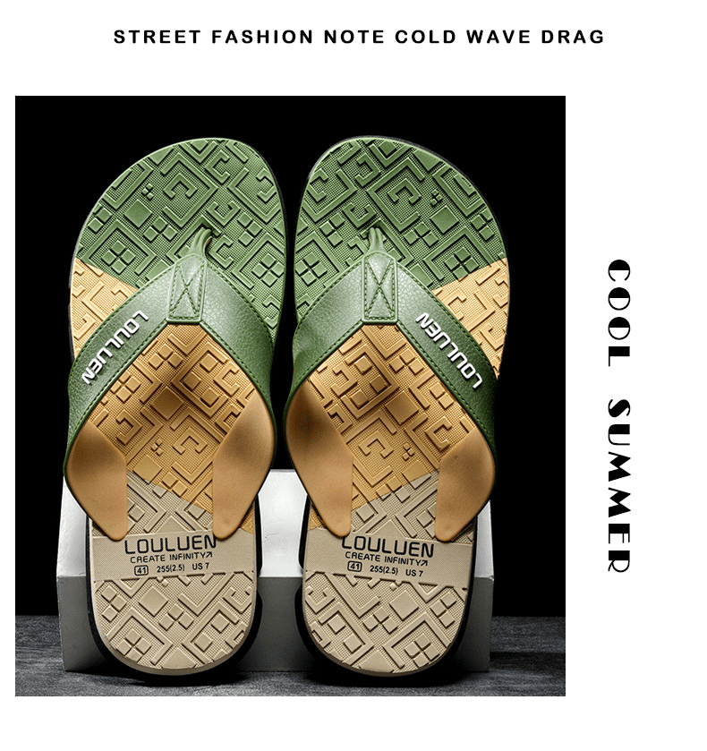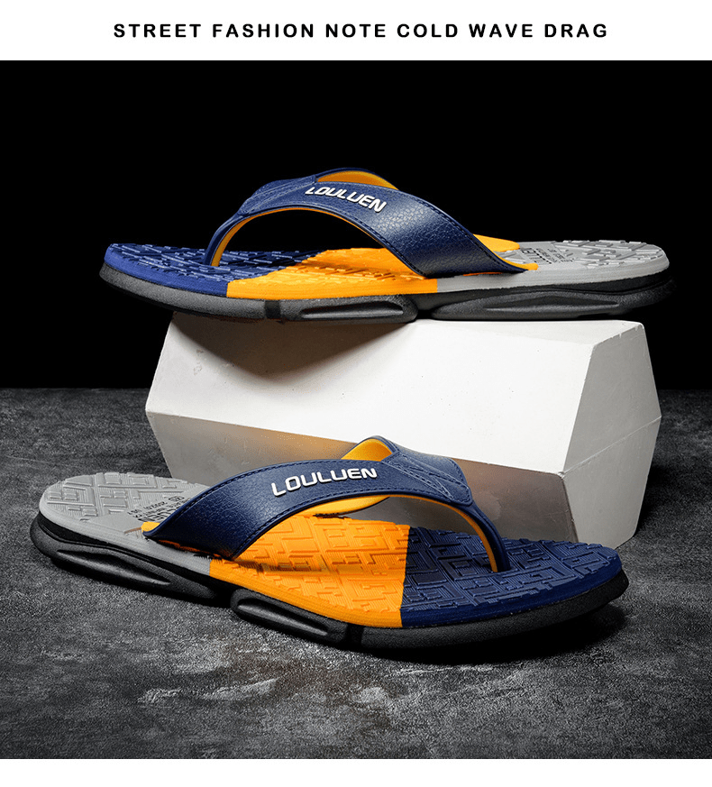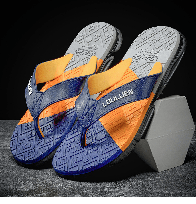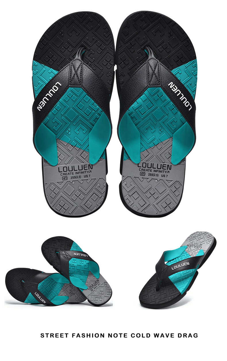 Dép xỏ ngón nam LOULUEN quai đeo bằng dây da chống thấm nước với thiết kế đường vân 3D mang êm chân G00029