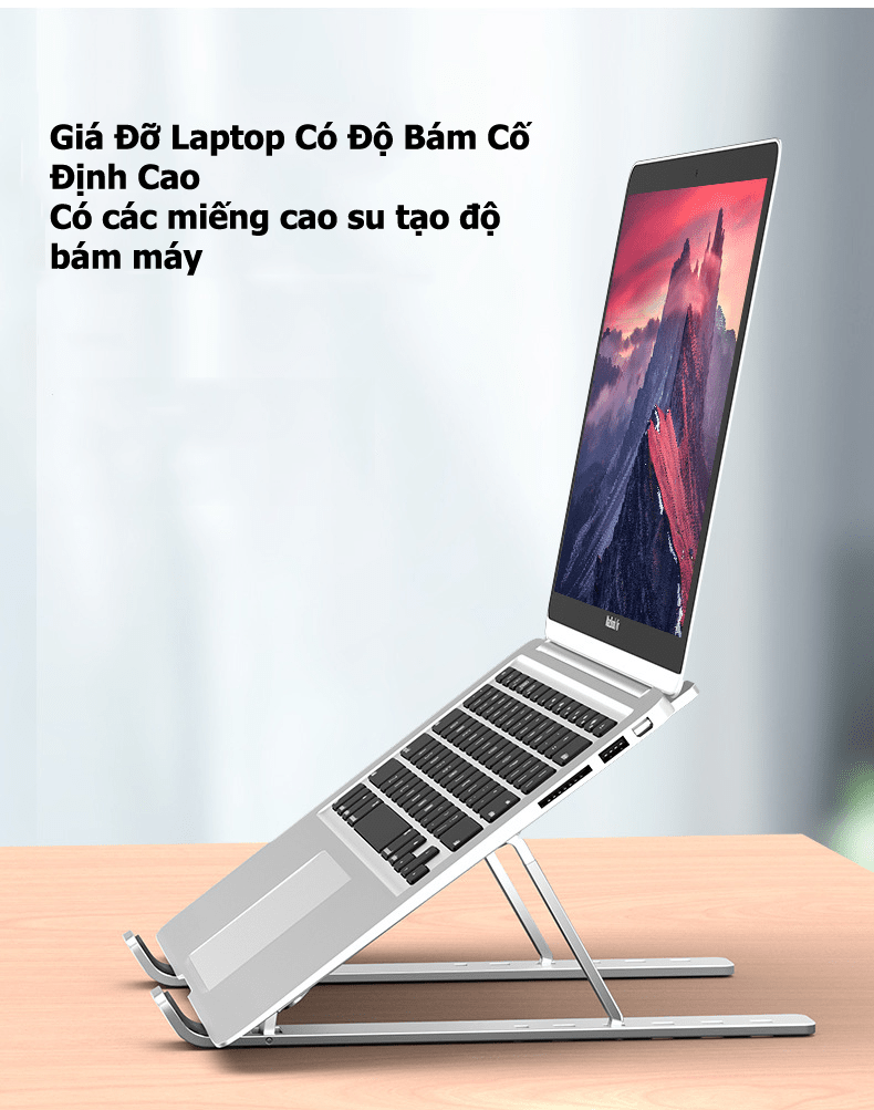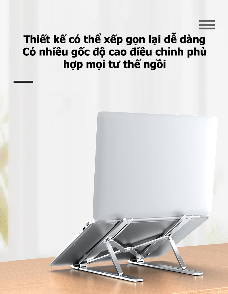 Giá đỡ laptop tản nhiệt bằng nhôm gấp gọn có thể điều chỉnh nhiều mức độ cao chất liệu hợp kim nhôm cao cấp HD00019