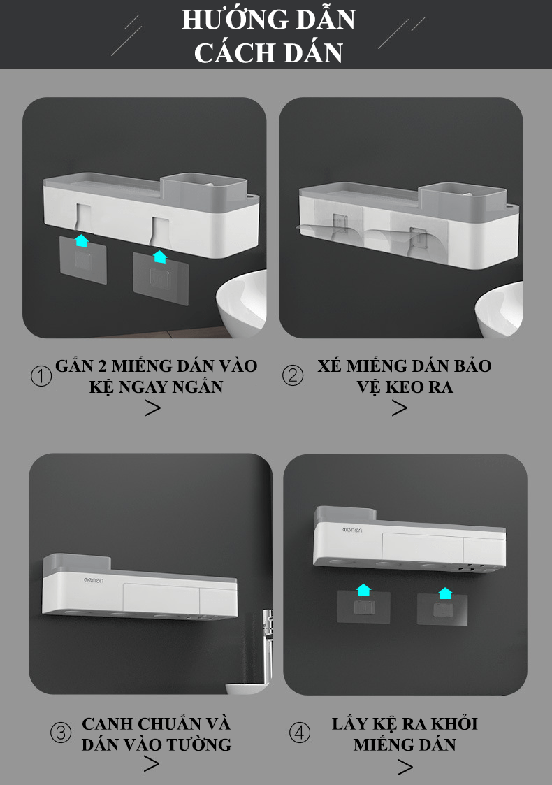 - Gắn tường không cần đục lỗ, lắp đặt dễ dàng