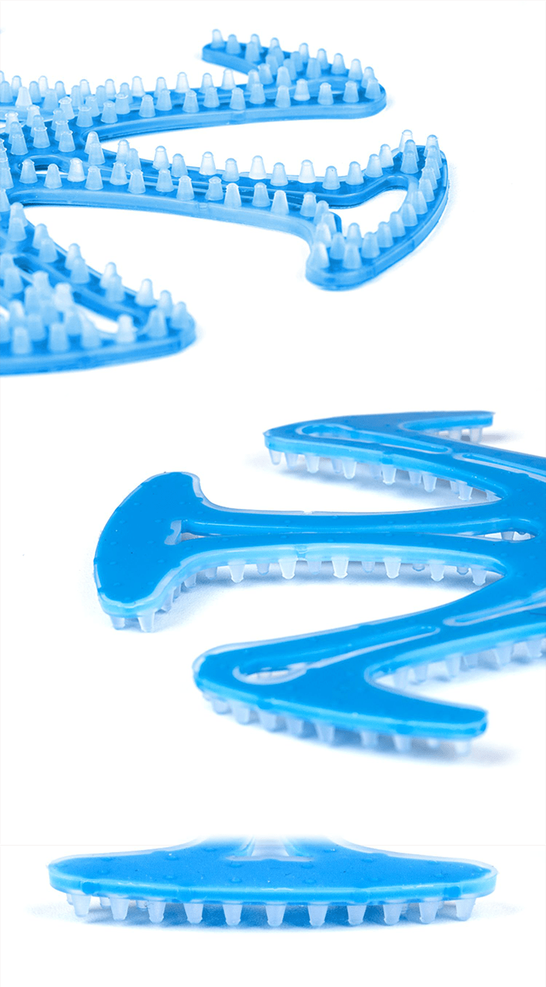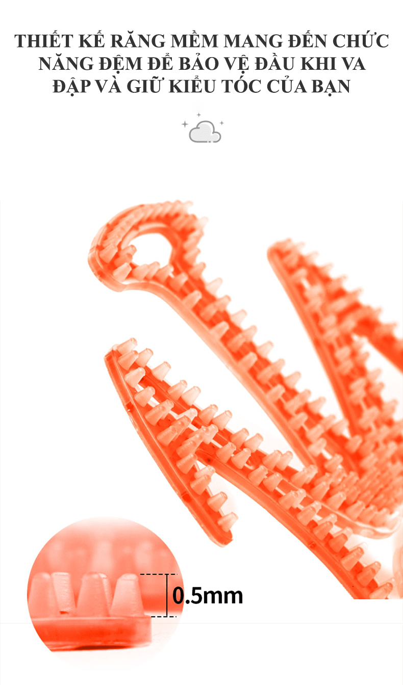 - Thiết kế răng móng mềm: Khi có va chạm, nó có thể đóng một vai trò đệm, giúp đầu bảo vệ thêm một lớp bảo vệ và đồng thời nó có thể massage da đầu và ngăn mất kiểu tóc của bạn