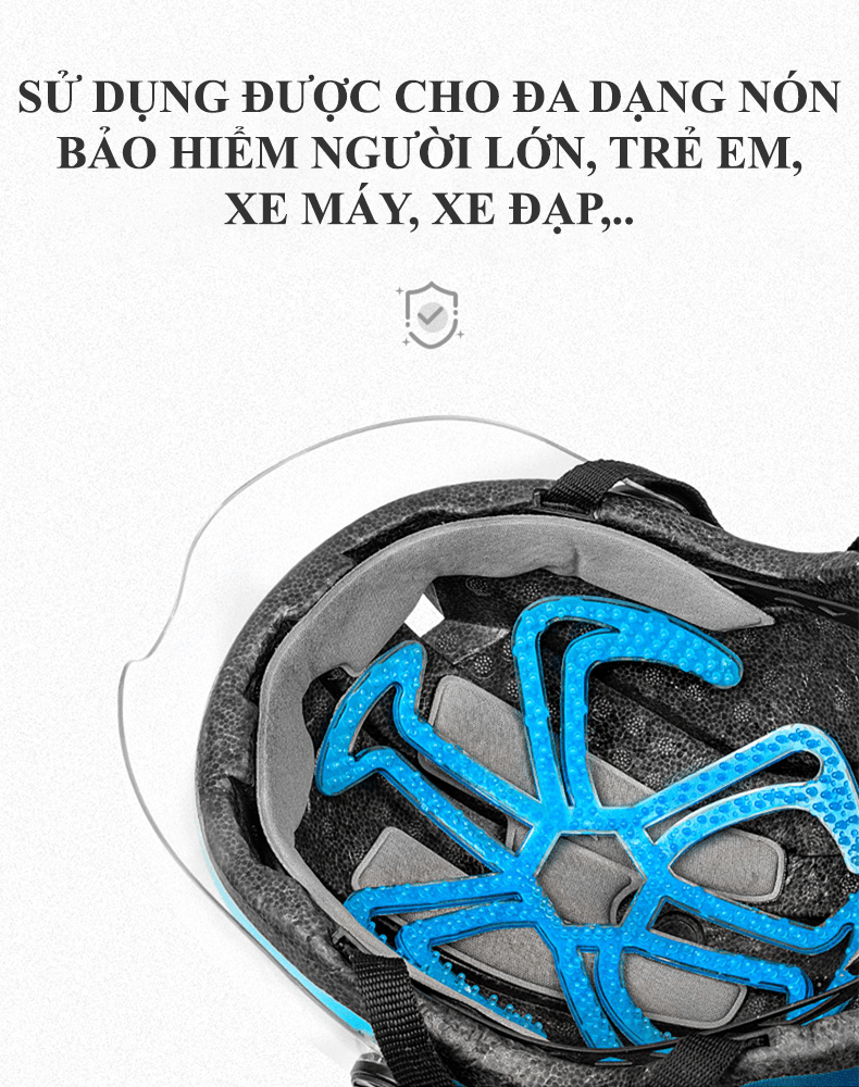 - Mũ bảo hiểm đa năng thích hợp cho mũ bảo hiểm người lớn, mũ bảo hiểm trẻ em, mũ bảo hiểm xe máy, mũ bảo hiểm xe đạp điện, mũ bảo hiểm xe đạp,... phổ thông trong tất cả các mùa.