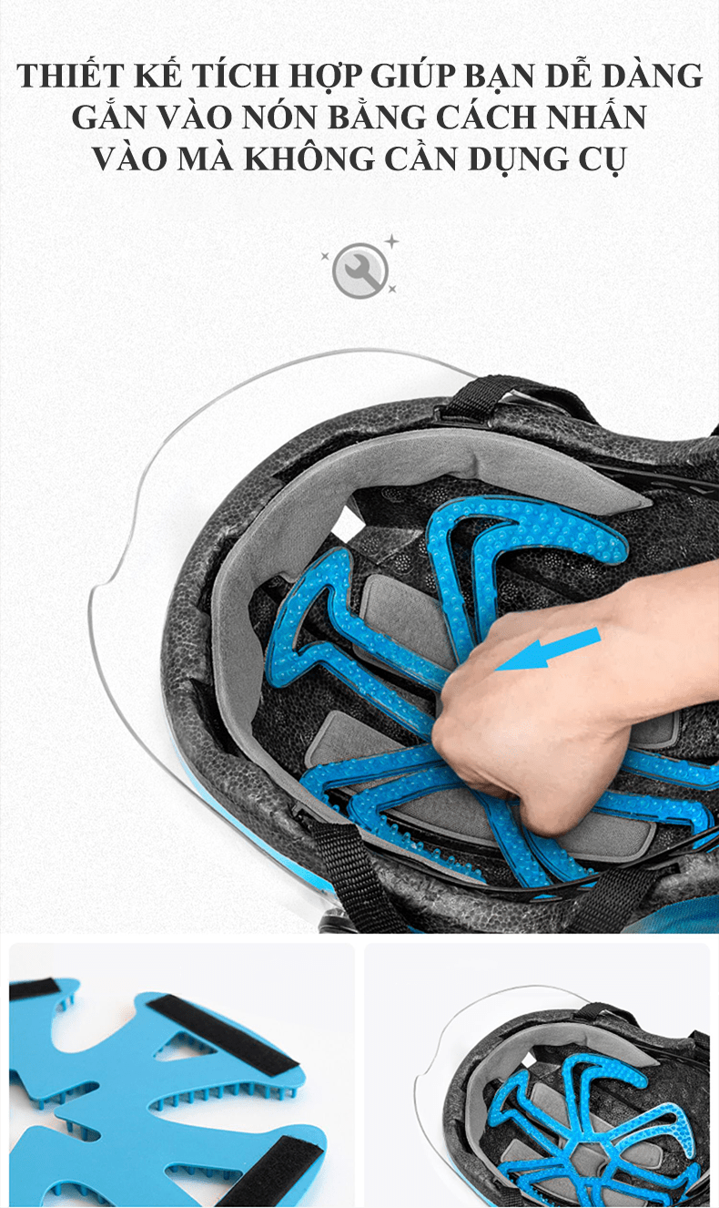 - Dễ dàng gắn vào nón chỉ với một lần nhấn, không cần dán, một lần nhấn có thể được cài đặt thuận tiện và nhanh chóng, và sử dụng thoải mái hơn.