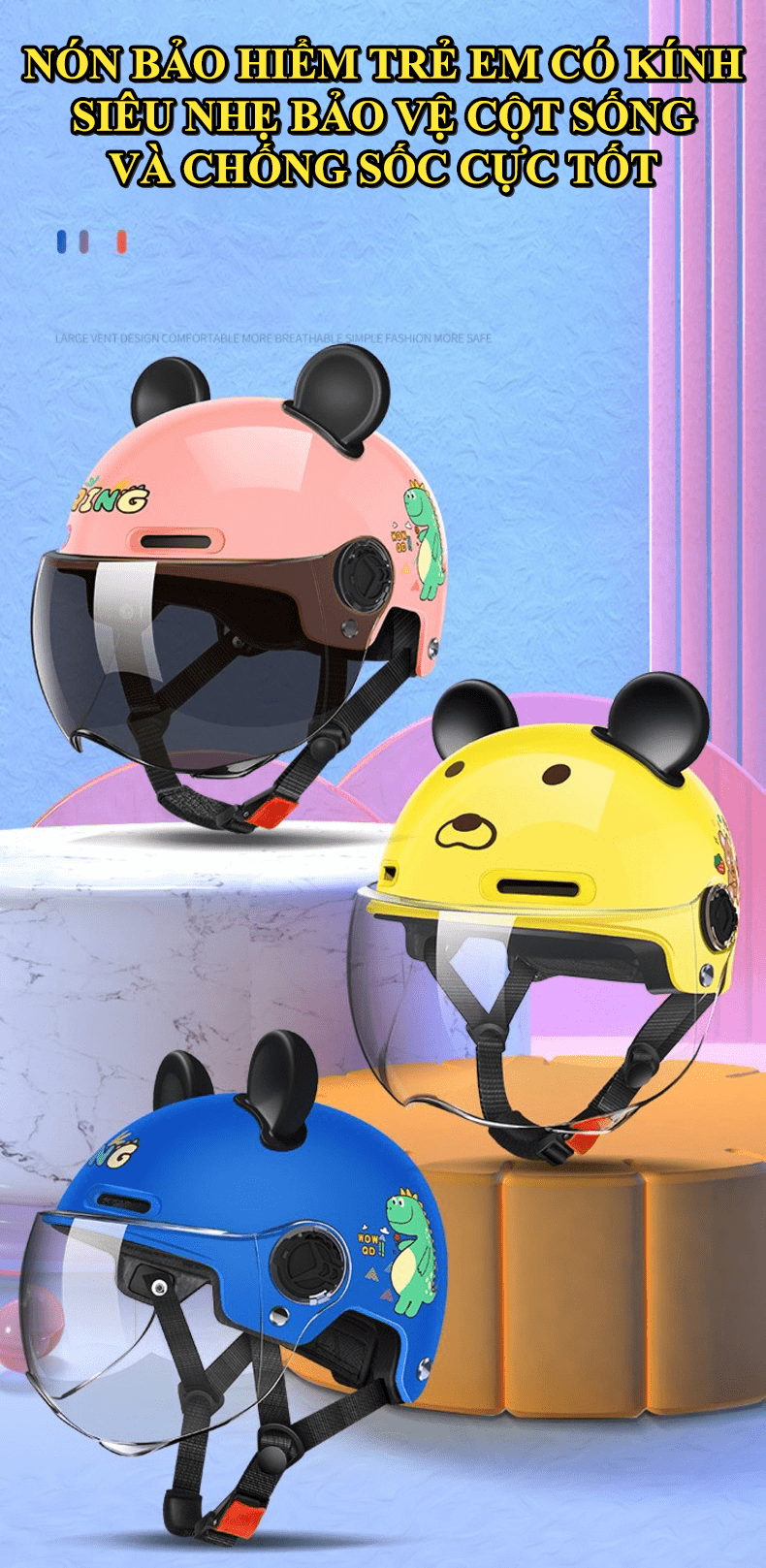 Nón bảo hiểm có kính siêu nhẹ tạo ra với mục đích nhằm bảo vệ đầu bé được an toàn trong các hoạt động vui chơi giải trí hoặc trong sinh hoạt hàng ngày như đi chơi, đi học