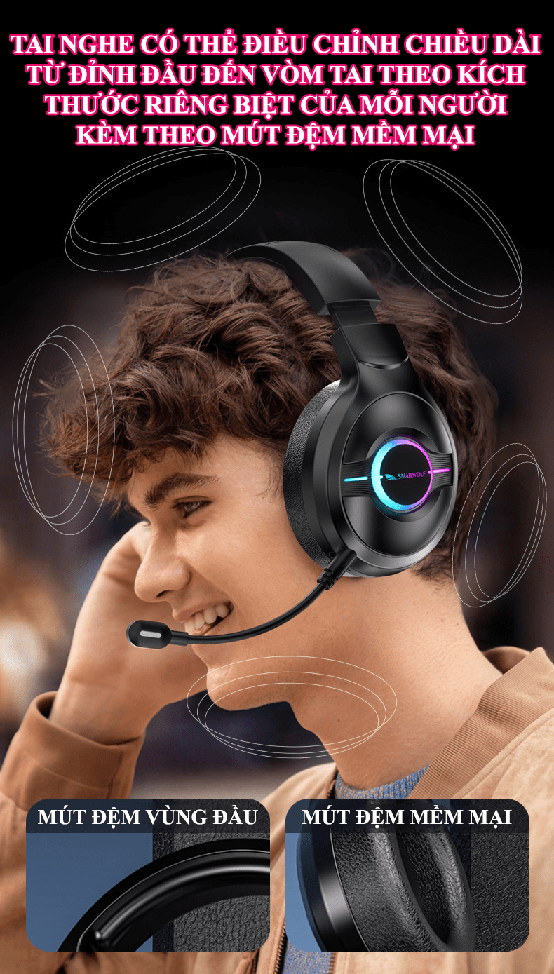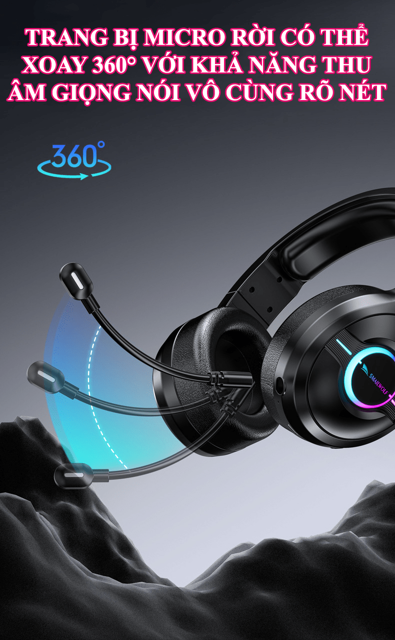 - Micro khử tiếng ồn đa hướng: Tai nghe SMAILWOLF L50 này có micro khử tiếng ồn đa hướng có thể tháo rời, linh hoạt, điều chỉnh 360° để giao tiếp với đồng đội dễ dàng. Bạn cũng có thể nhận và kết thúc cuộc gọi bất kỳ lúc nào. Nhấn nút micro sẽ có thông báo âm thanh cho biết micro đang bật hay tắt.