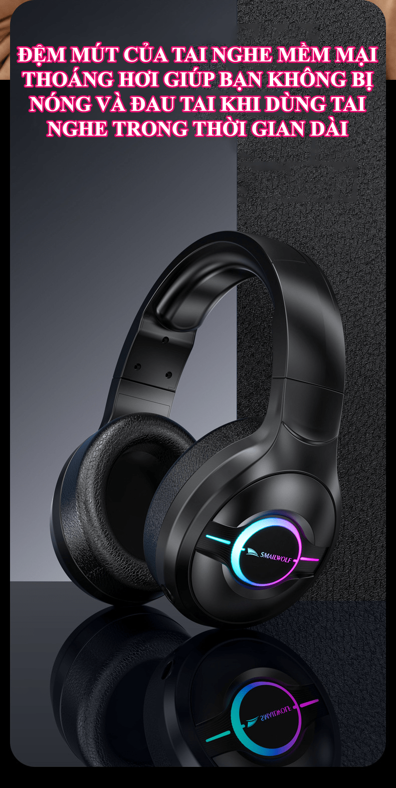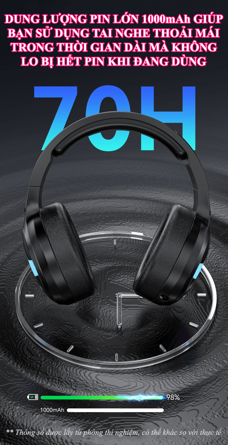 - Thiết kế thoải mái và siêu nhẹ: Tai nghe không dây được làm từ mút xốp nhớ siêu mềm thoáng khí với cốc tai dạng lưới và băng đô có thể điều chỉnh để phù hợp với nhiều hình dạng đầu khác nhau. Với thiết kế siêu nhẹ (240gram), bạn sẽ không cảm thấy áp lực ngay cả khi chơi game hoặc nghe nhạc trong thời gian dài. Tai nghe hoàn toàn bao trọn tai, cách ly tiếng ồn và mang lại cảm giác đeo cực kỳ thoải mái cho việc sử dụng lâu dài.
